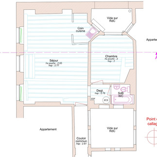 Projet de réunion appartement et combles avec détail de la charpente - Aménagement et création de trémie/escalier intérieur - Paris 11e
